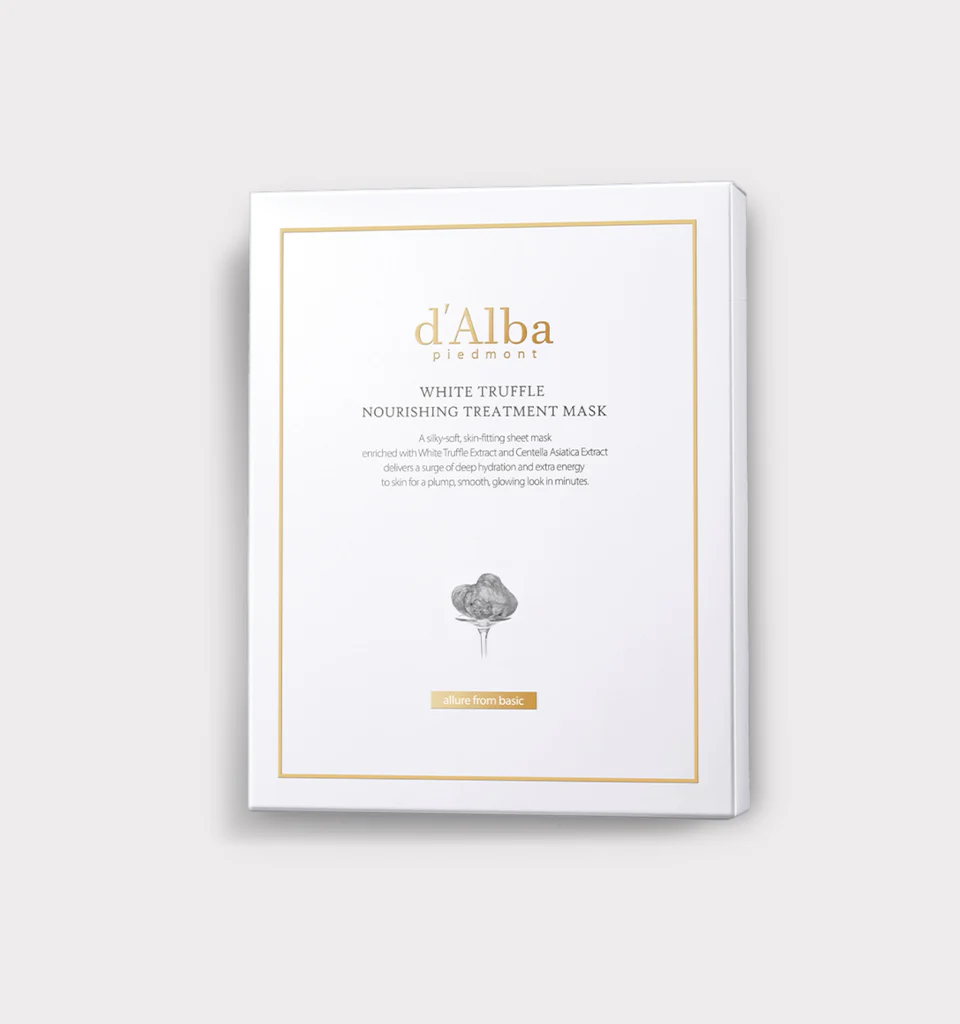 The d’Alba White Truffle Nourishing Treatment Mask delivers rich nourishment and comfort in one step. Featuring Italian white truffle extract combined with five-layer hyaluronic acid, the mask supports skin elasticity and hydration while fitting snugly to the face thanks to its soft cellulose sheet design. The formula is vegan certified and suitable for most skin types.