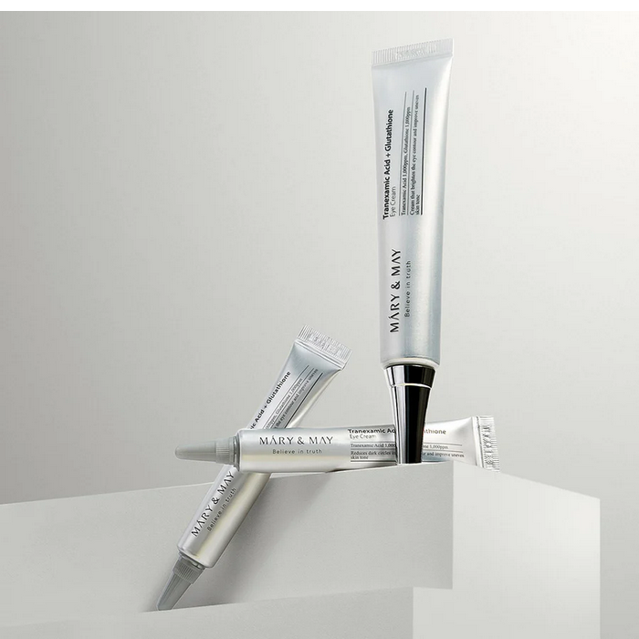 The Mary&May Glutathione Eye Cream set includes one 30 g full-size and two 12 g mini versions of the brand’s Tranexamic Acid + Glutathione Eye Cream. The formula features 1,000 ppm each of tranexamic acid and glutathione, supported by niacinamide and vitamin C, to help improve the appearance of under-eye darkness, uneven tone and fine lines. It is designed for gentle but effective care around the delicate eye area.