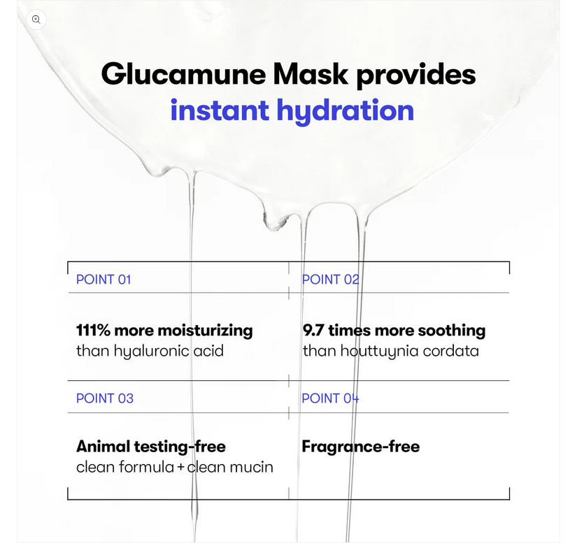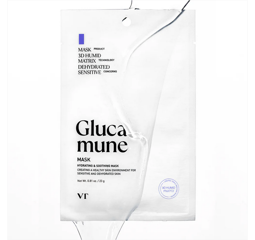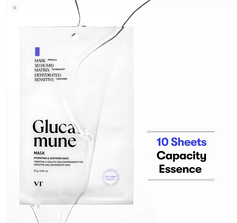The VT Glucamune Mask uses a plant-based mucin alternative derived from snow mushroom (Tremella Fuciformis) called Glucamune which offers superior hydration and calming effects compared to standard hyaluronic acid. The formula is enriched with panthenol, squalane and allantoin to repair and protect the skin barrier, prevent moisture loss and soothe irritated or dehydrated skin. The lightweight sheet adheres well, gives a refreshing, non-sticky finish, and is suitable for all skin types—including sensitive or barrier-weakened.