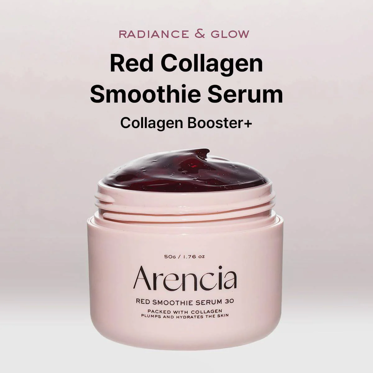 The ARENCIA Fresh Red Smoothie Serum 30 features a unique jelly-gel formulation designed for skin that needs visible radiance, pore refinement and elasticity improvement. With a 30% Red Collagen Complex, high-dose niacinamide and antioxidant-rich botanical extracts like rosehip and beet root, the Fresh Red Smoothie Serum 30 delivers hydration, texture enhancement and skin tone improvement. The non-sticky finish works well under makeup or as part of a nighttime routine.